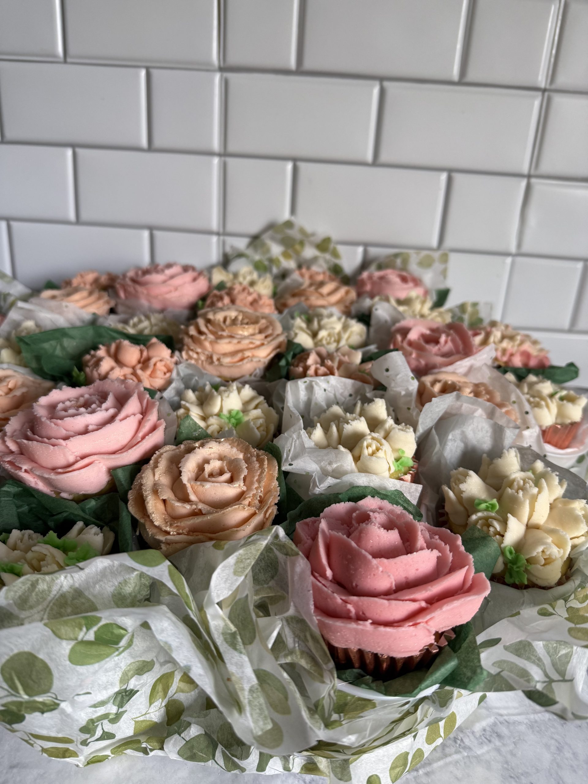 Party sized flower cupcakes for your special event.